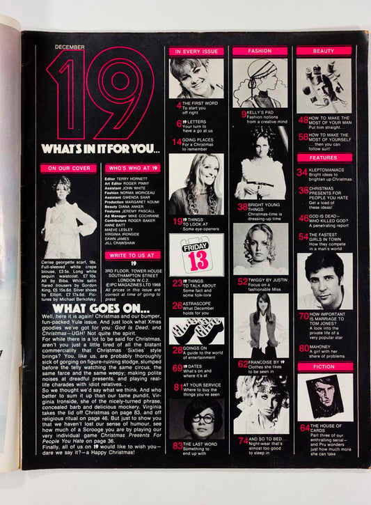 BIBA Twiggy FRANCOISE HARDY Tom Jones 19 MAGAZINE December 1968