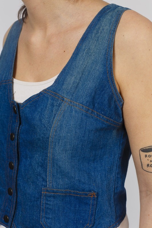70s Denim waistcoat ROCKER Hippy BOHO studded STITCHED fitted POCKETS Like Chloe