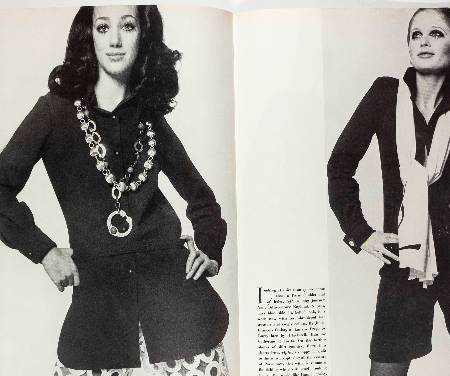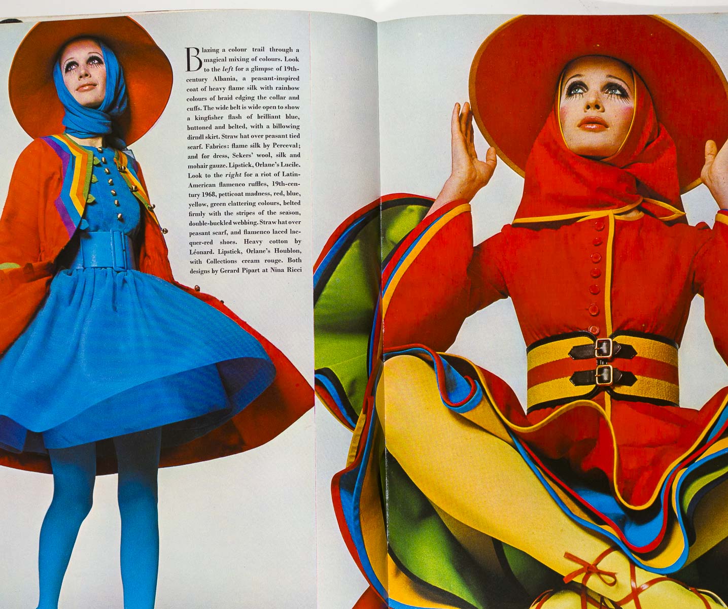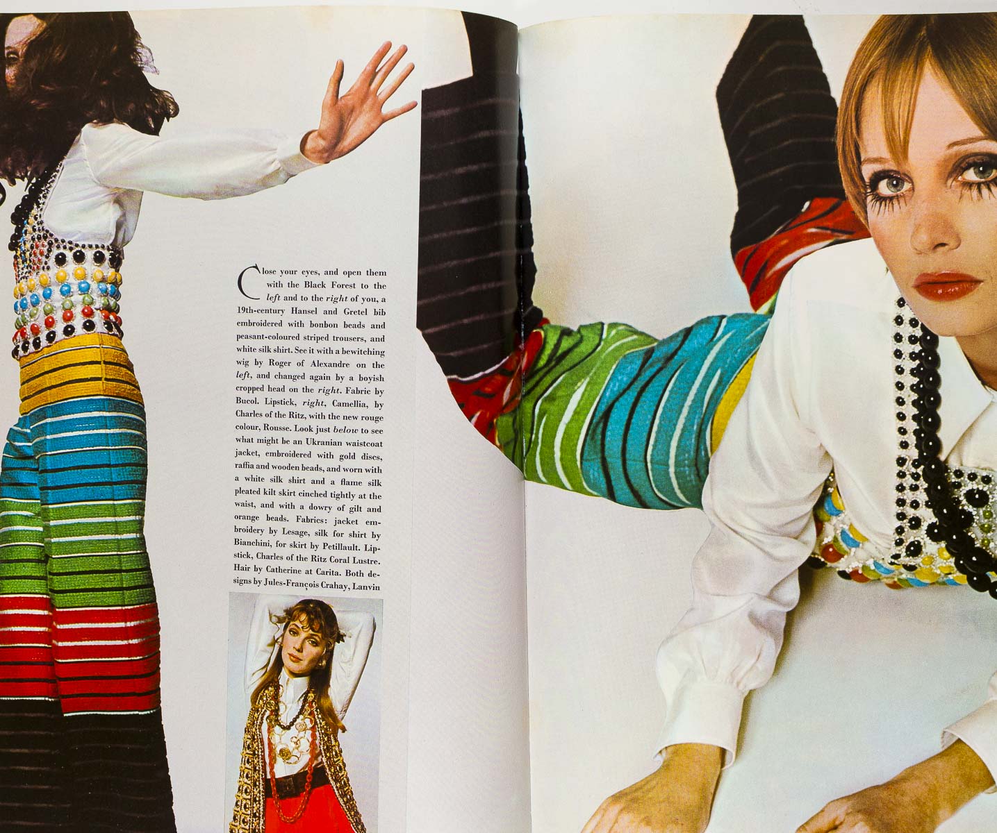 Fashion editorials modeled by - Marisa Berenson, Celia Hammond, Benedetta Barzini, Cathee Dahmen, Sue Murray, Moyra Swann and Willy Van Rooy. Veruschka by Rubartelli for a full page beauty shot (exaggerated lashes)