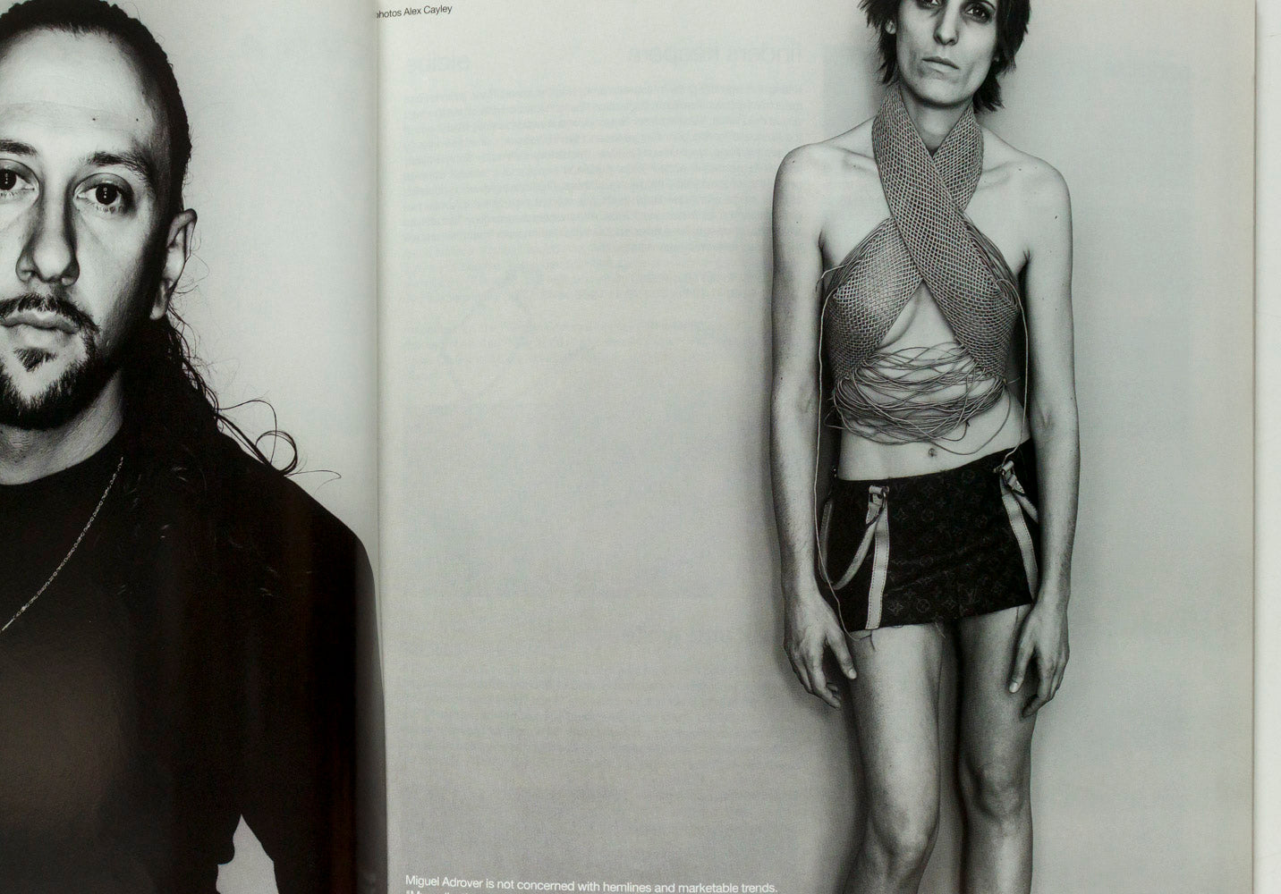 Miguel Adrover interview about his take on fashion, background etc. 2 pages inc 2 photos. One image has been used as for the publicity of The Horn designer's biopic film Myth due out in 2026.