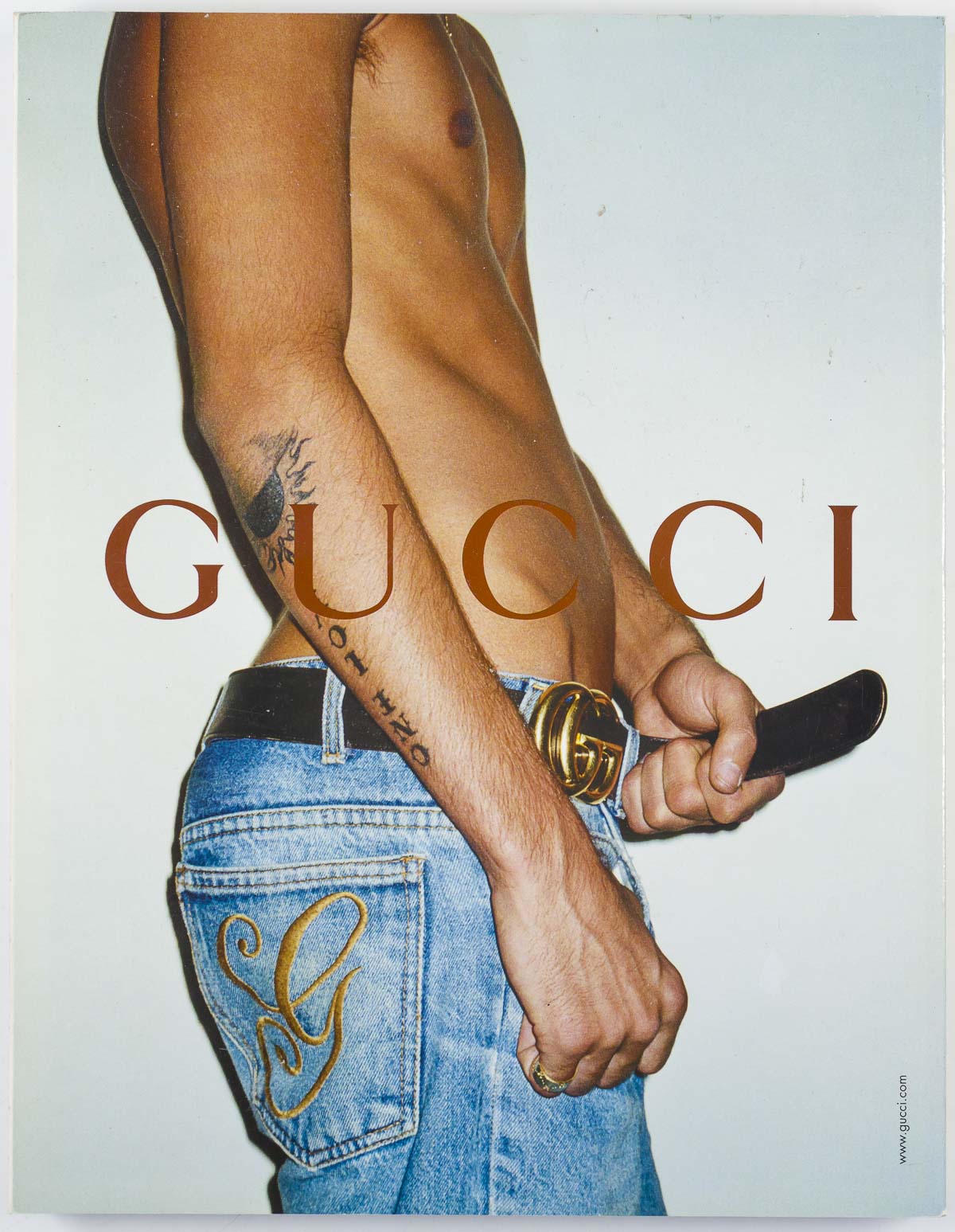 The back cover is the iconic Gucci 'belt' image advert