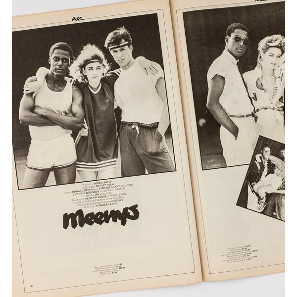 'Meenys’ Sportswear inspired editorial, photos by Roger Eaton. Models: Howard Dennis, Stephen Grant and Victoria Robinson, 2 pages.