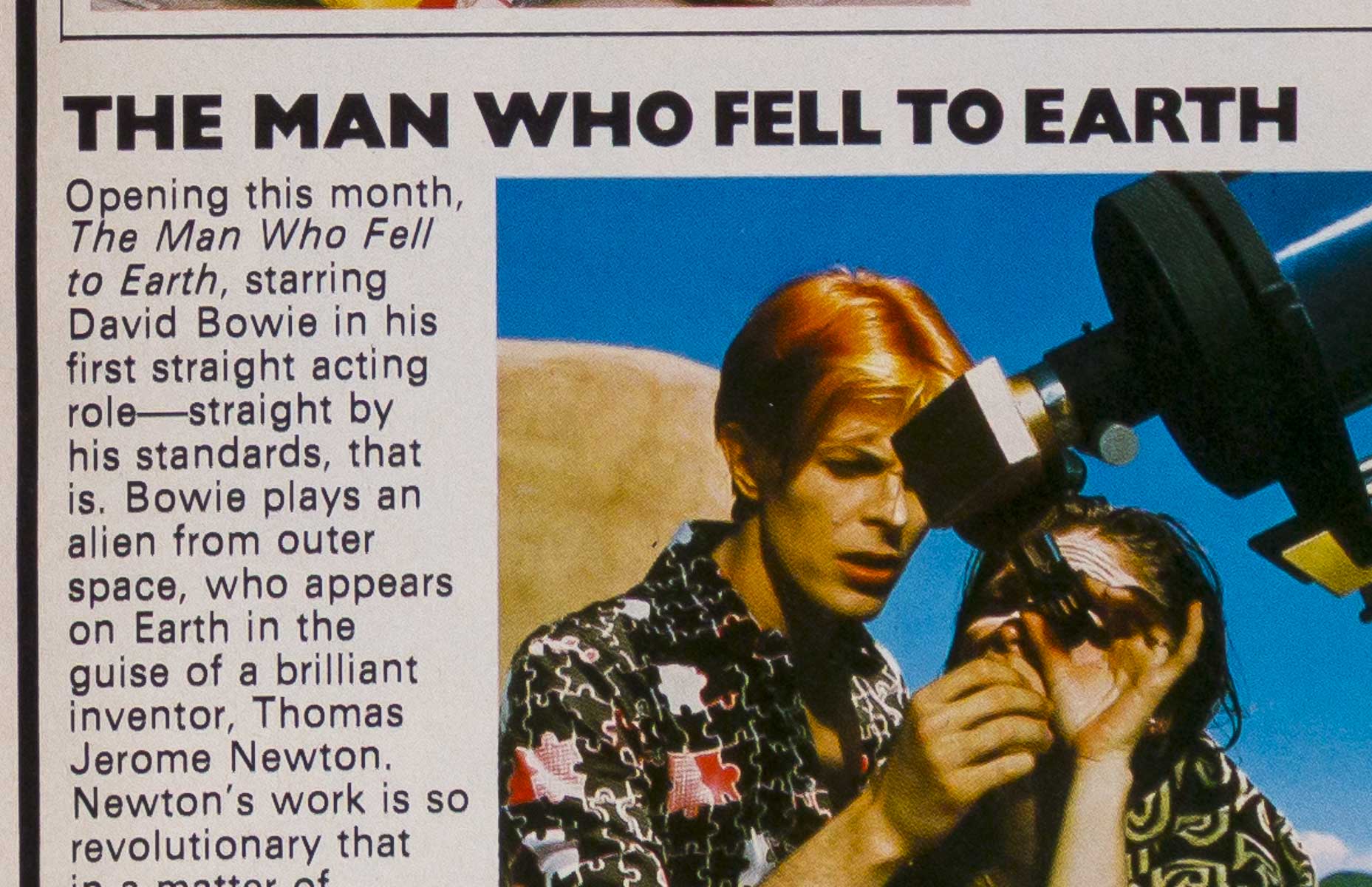 Inside is a short preview of The Man Who Fell To Earth, a film starring David Bowie, opens this issue of Honey magazine.