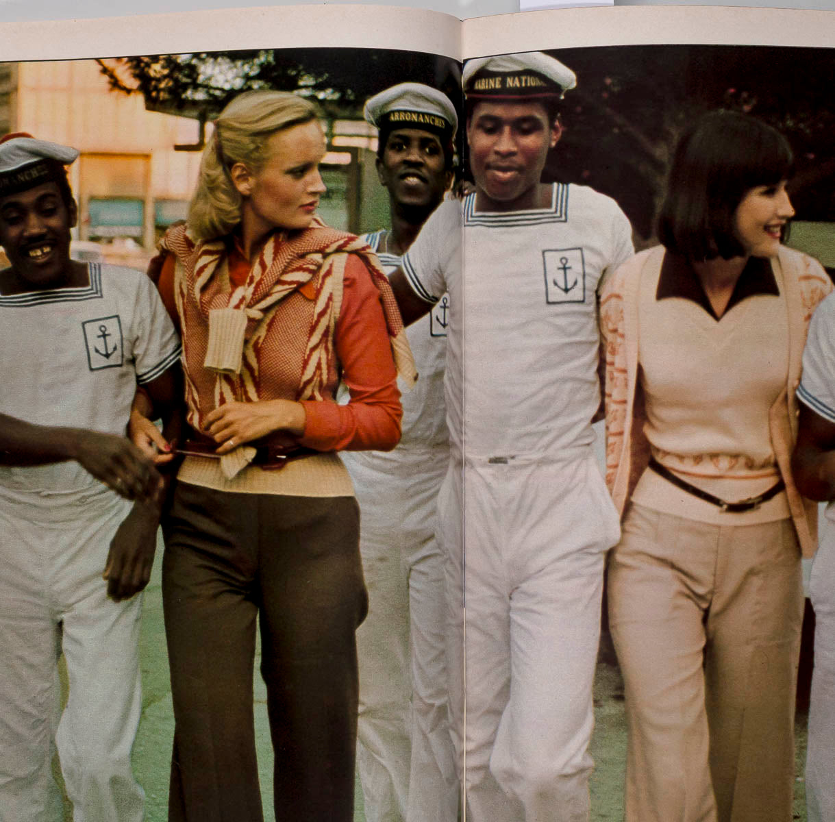 'Bonjour Matelot' shot by Monty Coles, is one of the main fashion editorials in the issue showcasing garments with a sports casual feel, such as box-pleat skirts and Oxford bag trousers with sailors in a naval theme