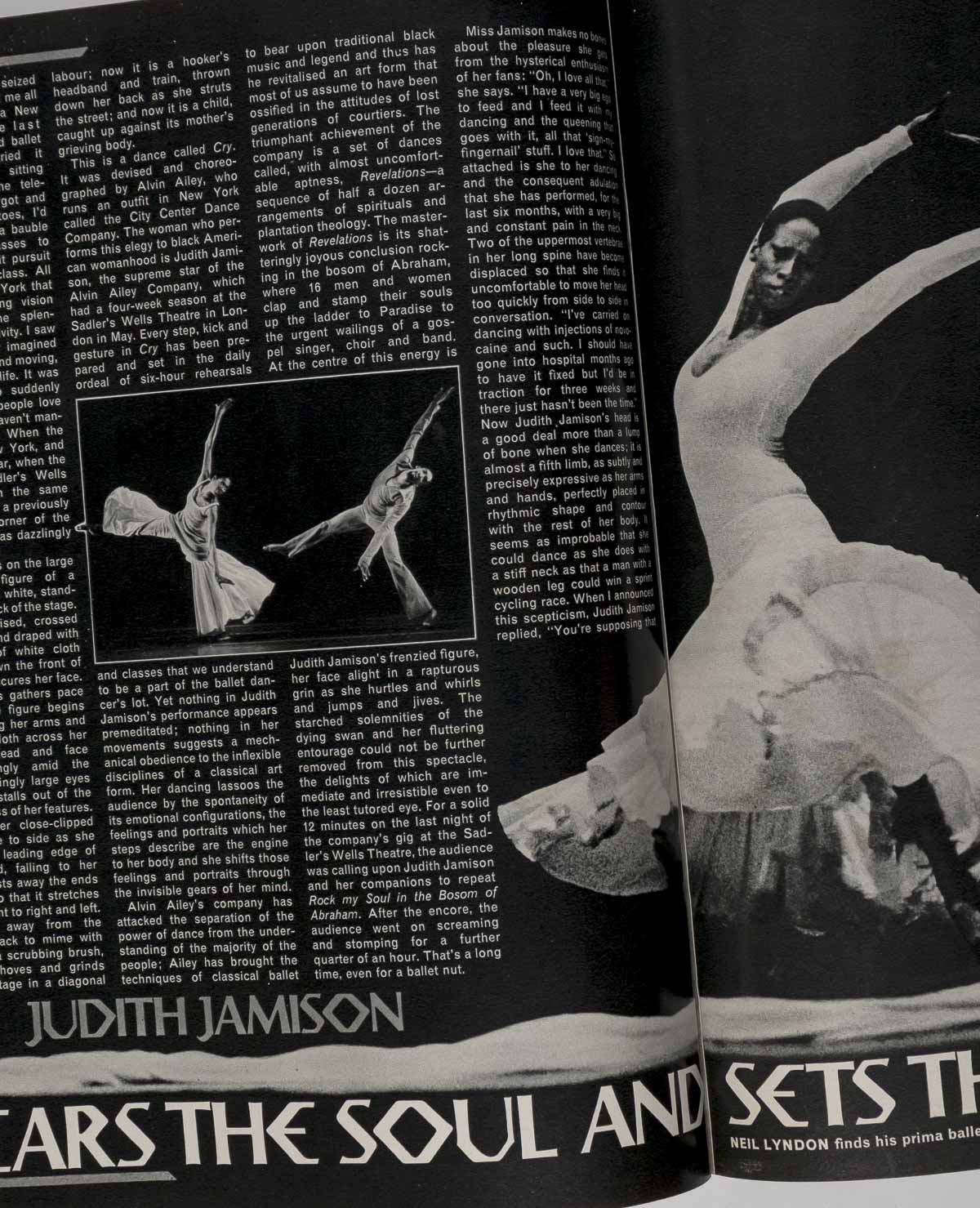 The Alvin Ailey dance Company in New York - 2 pages with photographs and an interview with Judith Jamison