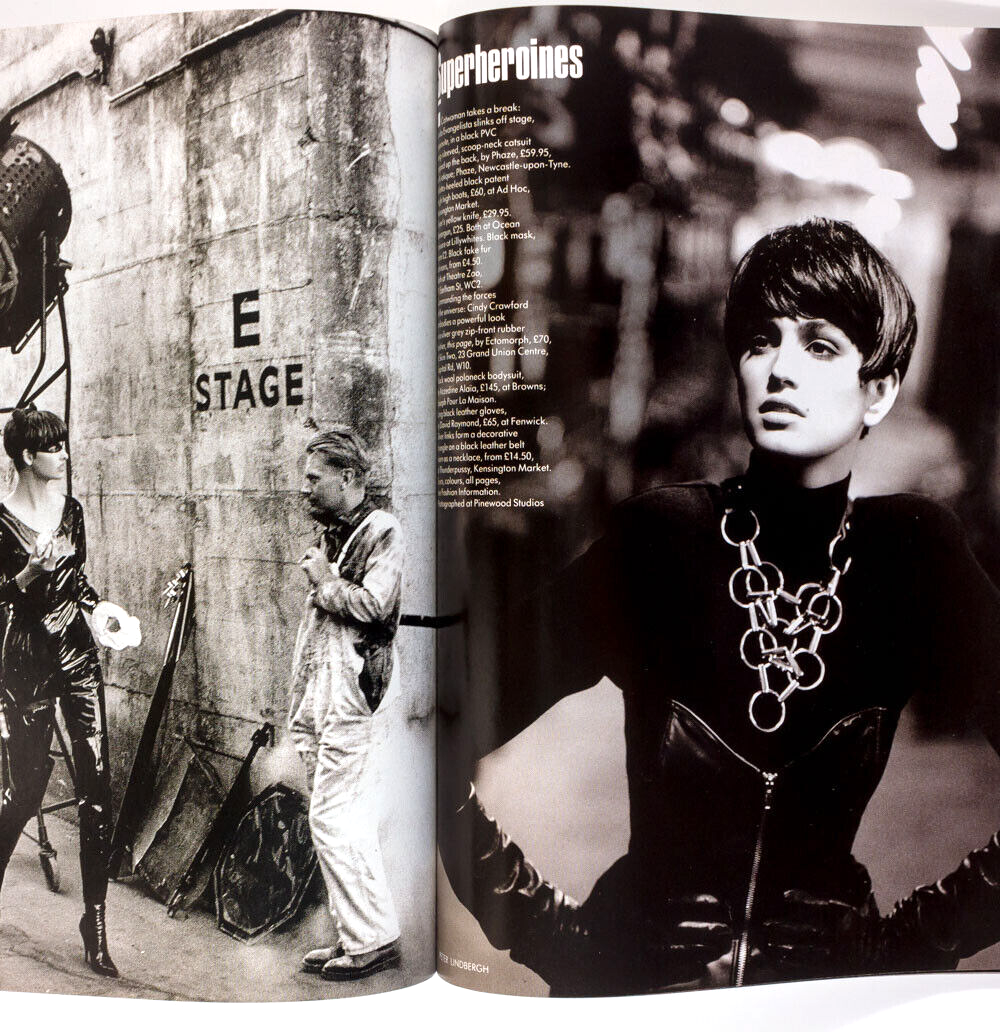 Cindy Crawford & Linda Evangelista model in an 7 page 'Superheroines' fashion spread by Peter Lindbergh.