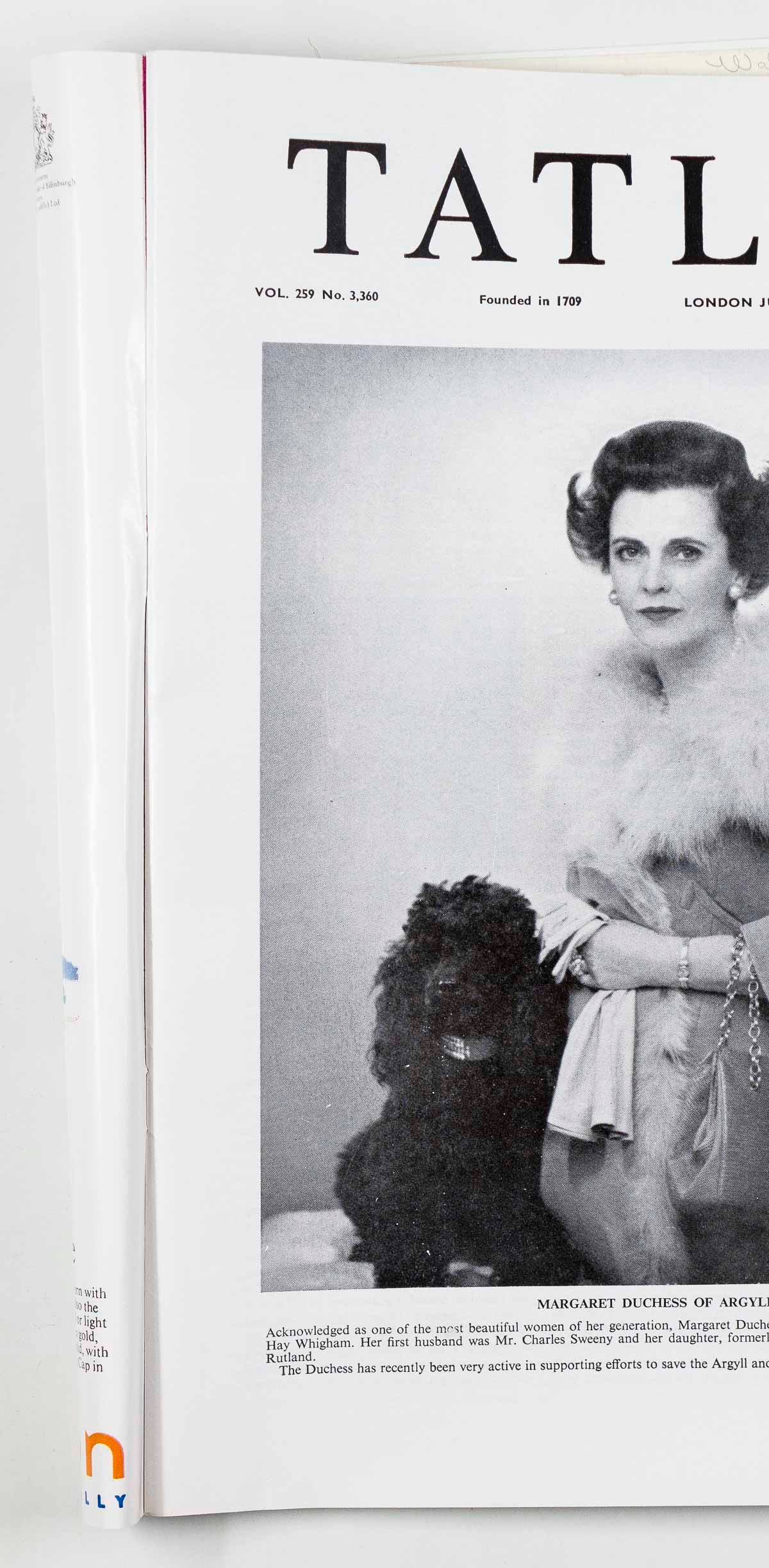 A Very rare issue of the British magazine 'Tatler'. The cover features Margaret Campbell, the topic of the BBC biopic drama surrounding her controversial divorce from Ian Campbell, the 11TH Duke of Argyll, starring Claire Foy and Paul Bettany.
