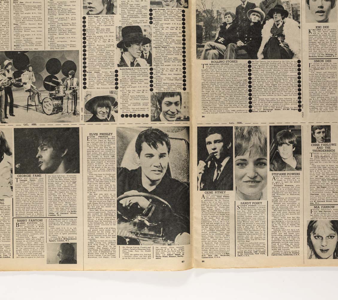 Good condition. The photograph you see is from the actual item you will receive, we do not use stock photos. Inside is a cut-out and keep guide to lovely people of the scene back then, pages of which are meant to be folded in half and then half again. The magazine has one vertical and one horizontal crease running through it, though it diminishes through the pages. Otherwise it is complete with no writing nor any pages missing - a rare find indeed!